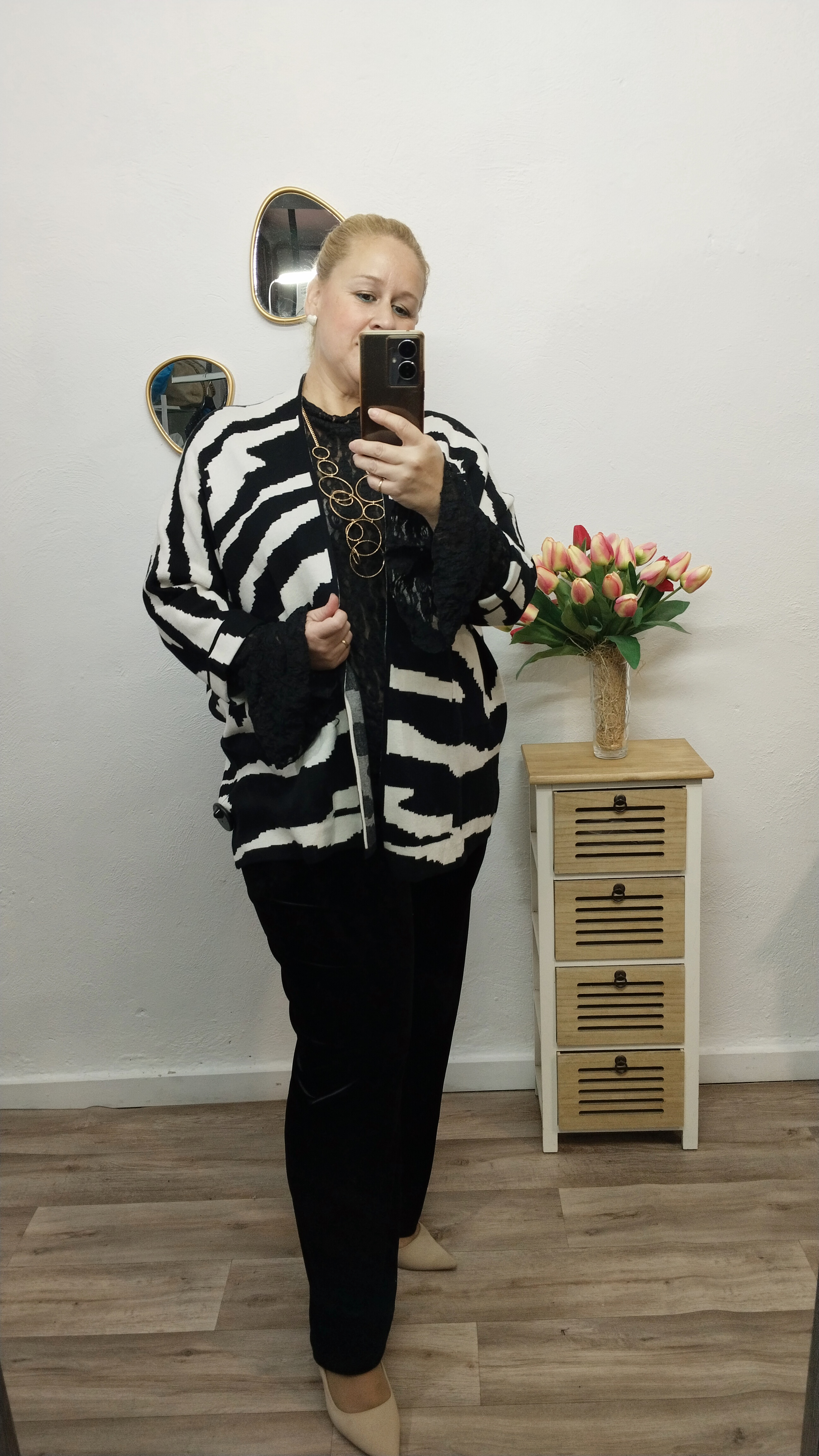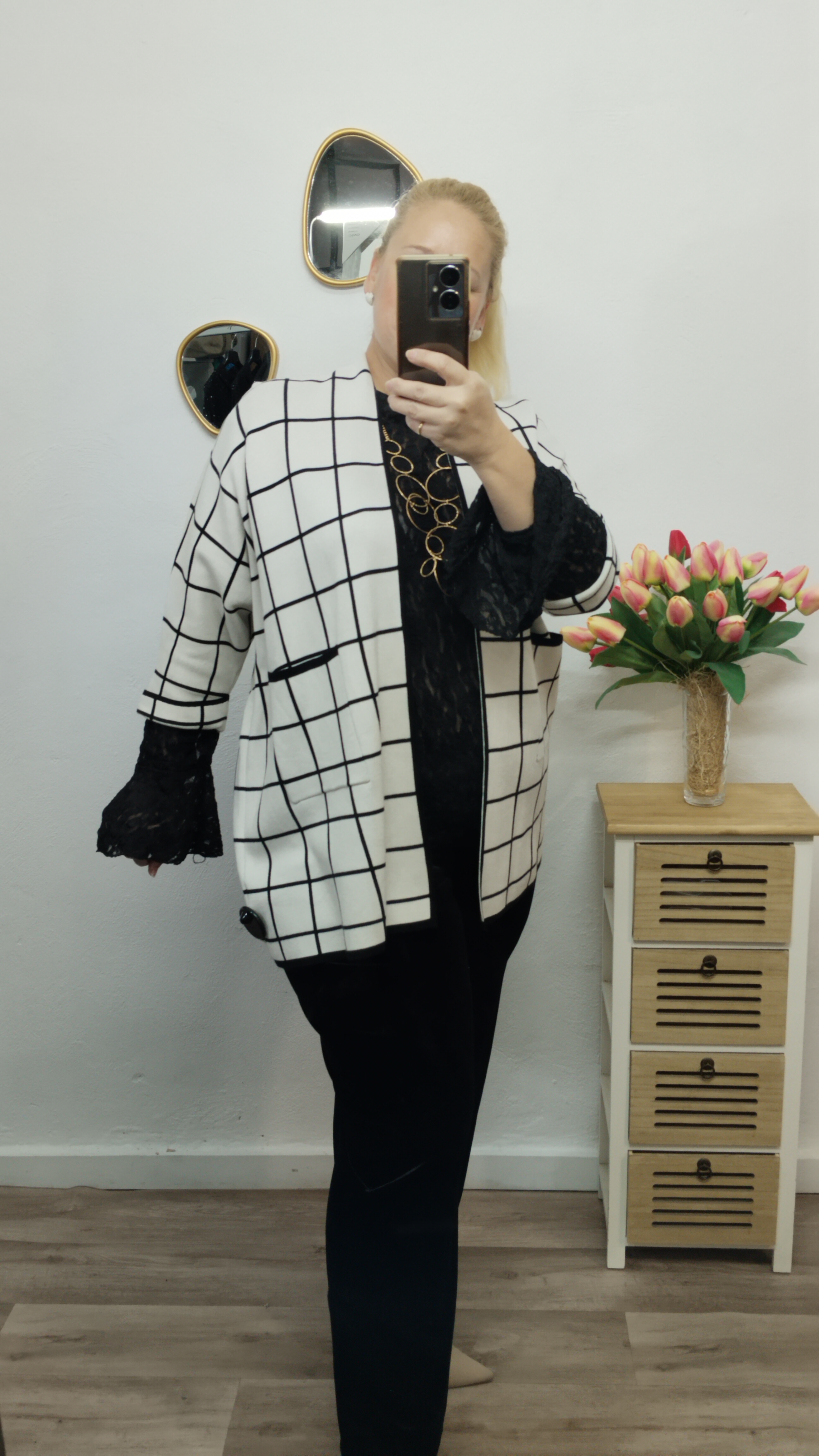 - Kimono de punto elástico, gordito. media manga, abierto, con bolsillos.